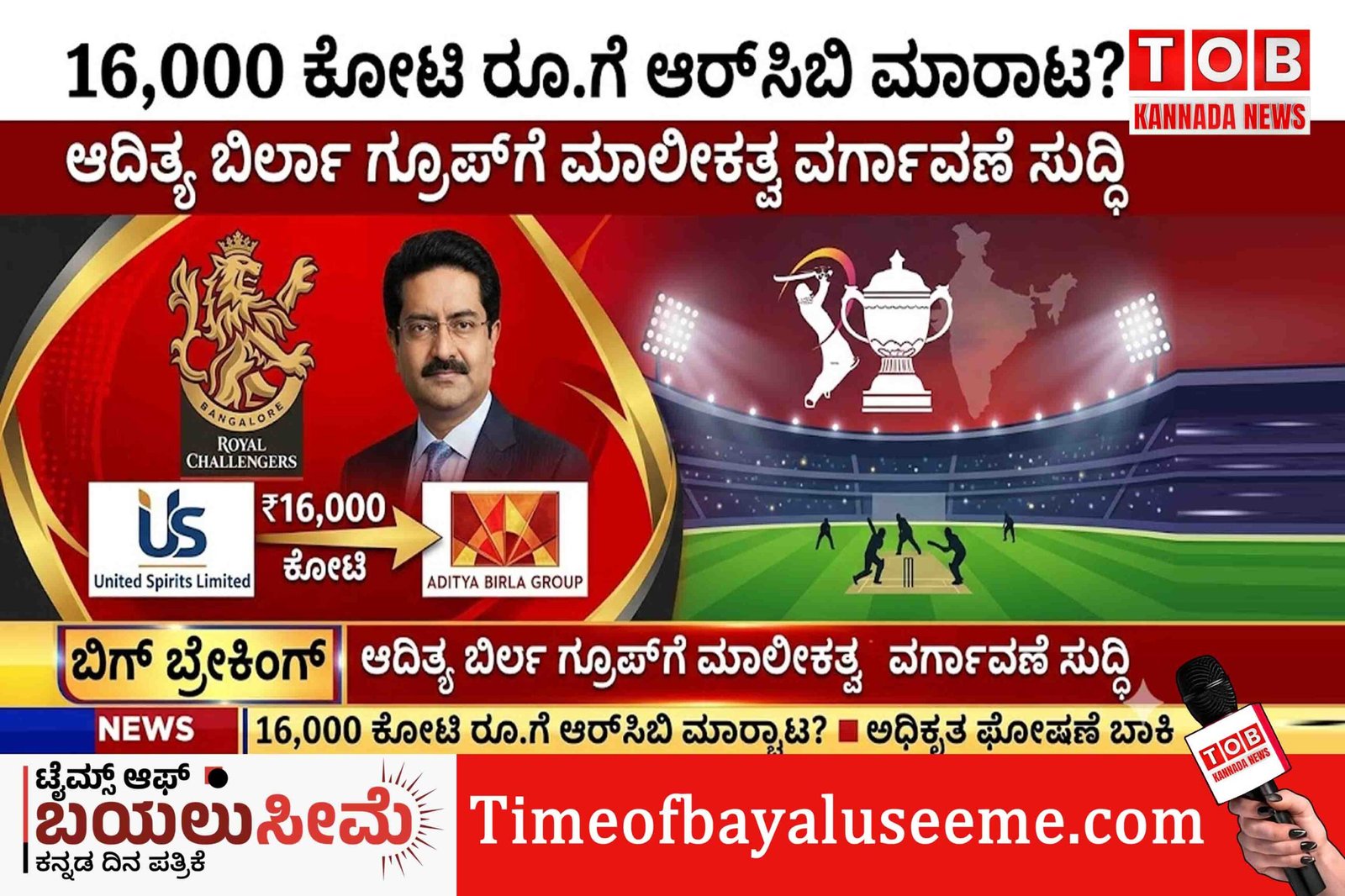 ಐಪಿಎಲ್ ವಲಯದಲ್ಲಿ ಭಾರೀ ಚರ್ಚೆಗೆ ಗ್ರಾಸವಾಗಿರುವ ಸುದ್ದಿಯಂತೆ Royal Challengers Bangalore (ಆರ್ಸಿಬಿ) ತಂಡವು ಸುಮಾರು 16,000 ಕೋಟಿ ರೂಪಾಯಿಗೆ ಮಾರಾಟವಾಗಿರುವುದಾಗಿ ವರದಿಗಳು ತಿಳಿಸಿವೆ.
