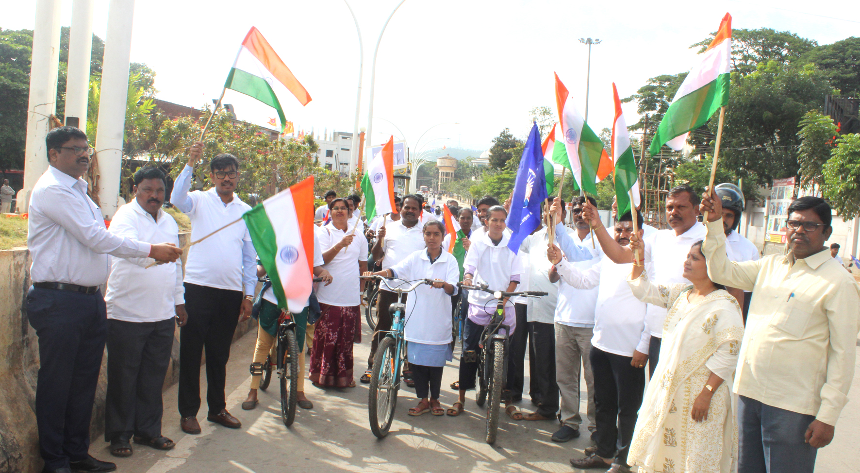 ಚಿತ್ರದುರ್ಗ:ಅಂತರಾಷ್ಟ್ರೀಯ ಪ್ರಜಾಪ್ರಭುತ್ವ ದಿನಾಚರಣೆ ಅಂಗವಾಗಿ ನನ್ನ ಮತ-ನನ್ನ ಹಕ್ಕು ಎಂಬ ಮಹತ್ವ ಸಾರುವ ಉದ್ದೇಶದೊಂದಿಗೆ ಚಿತ್ರದುರ್ಗ ನಗರದಲ್ಲಿ ಸೈಕಲ್ ಹಾಗೂ ಬೈಕ್ ರ್ಯಾಲಿ ನಡೆಯಿತು. ನಗರದ ಡಾ. ಬಿ.ಆರ್. ಅಂಬೇಡ್ಕರ ವೃತ್ತದಲ್ಲಿ ಜಿಲ್ಲಾಡಳಿತ, ಜಿಲ್ಲಾ ಪಂಚಾಯತ್ ಹಾಗೂ ಸಮಾಜ ಕಲ್ಯಾಣ ಇಲಾಖೆ ಹಾಗೂ ನಗರಸಭೆ ಸಂಯುಕ್ತಾಶ್ರಯದಲ್ಲಿ ಹಮ್ಮಿಕೊಂಡಿದ್ದ ಪ್ರಜಾಪ್ರಭುತ್ವ ದಿನದ ಜಾಗೃತಿ ಜಾಥಾಕ್ಕೆ ಅಪರ ಜಿಲ್ಲಾಧಿಕಾರಿ ಬಿ.ಟಿ. ಕುಮಾರಸ್ವಾಮಿ ಚಾಲನೆ ನೀಡಿದರು.ನಗರದ ಡಾ.ಬಿ.ಆರ್.ಅಂಬೇಡ್ಕರ್ ವೃತ್ತದಿಂದ ಪ್ರಾರಂಭವಾದ ಸೈಕಲ್ ಹಾಗೂ ಬೈಕ್ ರ್ಯಾಲಿಯು ಮಹಾತ್ಮಾಗಾಂಧಿ ವೃತ್ತ, ಸಂಗೋಳ್ಳಿ ರಾಯಣ್ಣ ವೃತ್ತ, ಕನಕ ವೃತ್ತದ ಮೂಲಕ ಮತ್ತೆ ಪುನಃ ಜಿಲ್ಲಾಧಿಕಾರಿಗಳ ಕಚೇರಿವರೆಗೂ ನಡೆಯಿತು. ಈ ಸಂದರ್ಭದಲ್ಲಿ ತಹಶೀಲ್ದಾರ್ ಗೋವಿಂದರಾಜು, ಸಮಾಜ ಕಲ್ಯಾಣ ಇಲಾಖೆ ಉಪನಿರ್ದೇಶಕ ಮಲ್ಲಿಕಾರ್ಜುನ್, ಸಹಾಯಕ ನಿರ್ದೇಶಕ ಪರಮೇಶ್ವರಪ್ಪ, ಶಾಲಾ ಶಿಕ್ಷಣ ಇಲಾಖೆ ಉಪನಿರ್ದೇಶಕ ಎಂ.ಆರ್.ಮಂಜುನಾಥ್, ಜಿಲ್ಲಾ ಆಯುಷ್ ಅಧಿಕಾರಿ ಡಾ.ಚಂದ್ರಕಾಂತ್ ನಾಗಸಮುದ್ರ, ಜಿಲ್ಲಾ ಪರಿಶಿಷ್ಟ ವರ್ಗಗಳ ಕಲ್ಯಾಣಾಧಿಕಾರಿ ದಿವಾಕರ್ ಸೇರಿದಂತೆ ವಿವಿಧ ಇಲಾಖೆ ಅಧಿಕಾರಿಗಳು ಇದ್ದರು.