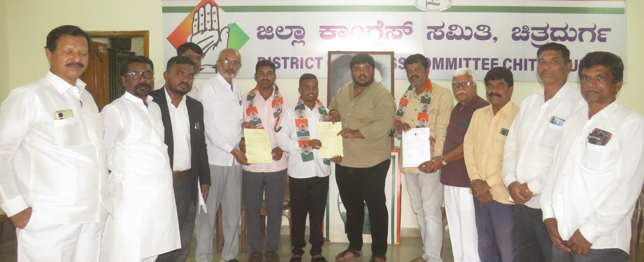 ಮೈಲಾರ ಎಂ.ಕೋಟಿ ಹಾಗೂ ಹೊಳಲ್ಕೆರೆ ತಾಲ್ಲೂಕು ಬಿ.ದುರ್ಗ ಹೋಬಳಿಯ ಹೆಚ್.ರಮೇಶ್ ಇವರನ್ನು ಜಿಲ್ಲಾ ಕಾಂಗ್ರೆಸ್ ಪ್ರಧಾನ