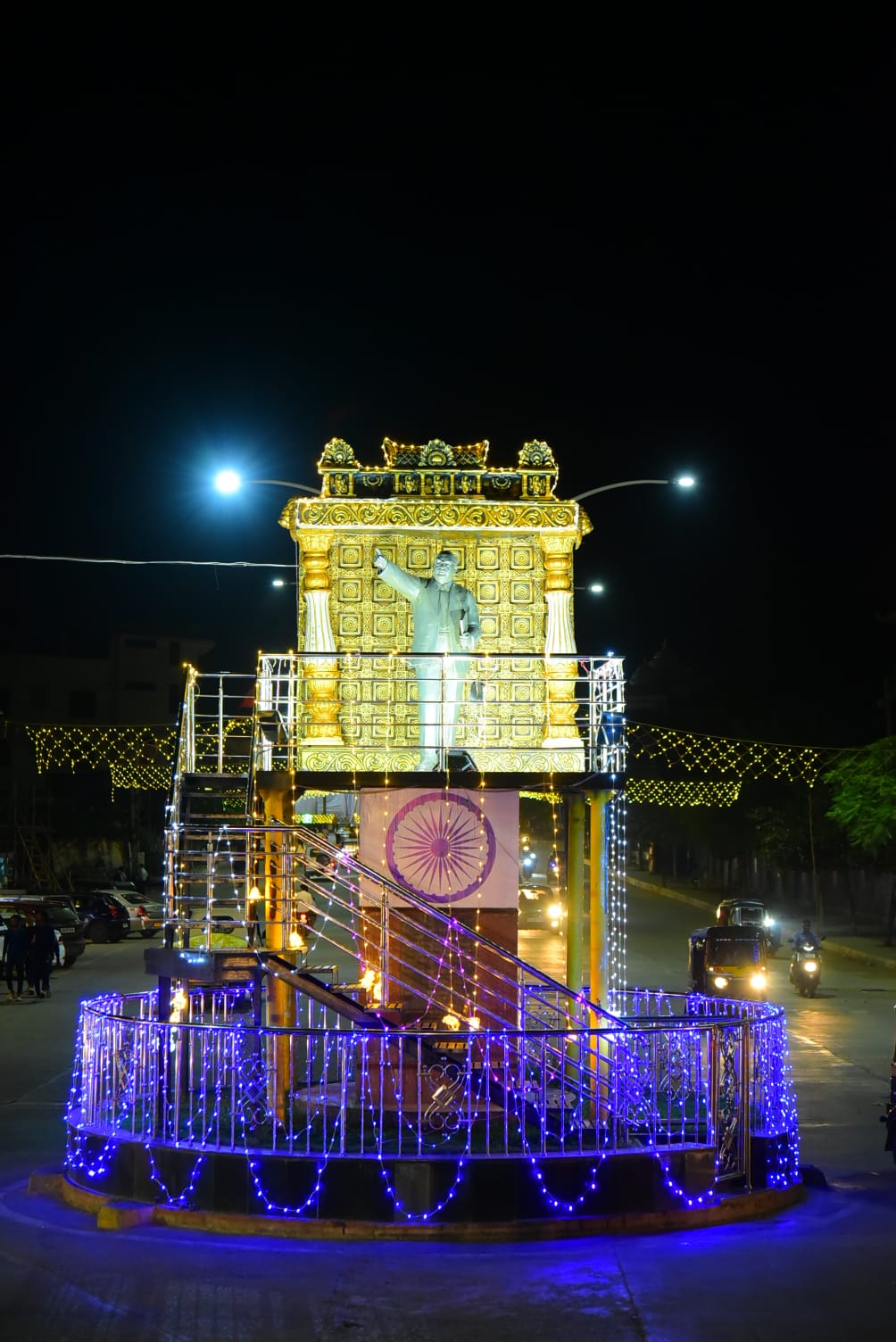 ಚಿತ್ರದುರ್ಗ: ನಗರದಲ್ಲಿ ಪ್ರತಿಷ್ಠಾಪನೆಯಾಗಿರುವ ಹಿಂದೂ ಮಹಾಗಣಪತಿಯ ಶೋಭಾಯಾತ್ರೆ ಶನಿವಾರ ಅದ್ದೂರಿಯಾಗಿ ನಡೆಯಲಿದೆ, ಇದರ ಅಂಗವಾಗಿ ಗಣೇಶೋತ್ಸವ ಸಮಿತಿ ವತಿಯಿಂದ ನಗರದಲ್ಲಿ ವಿವಿಧ ವೃತ್ತದಲ್ಲಿರುವ ಪ್ರತಿಮೆಗಳಿಗೆ ವಿಶೇಷವಾದಅಲಂಕಾರವನ್ನು ಮಾಡಲಾಗಿದೆ.ಚಿತ್ರದುರ್ಗವನ್ನು ಆಳಿದ ಮದಕರಿ ನಾಯಕ ಪ್ರತಿಮೆಯ ಬಳಿ ಈ ಬಾರಿ ವಿಶಿಷ್ಟವಾದ ಅಲಂಕಾರವನ್ನು ಮಾಡಲಾಗಿದೆ. ಮದಕರಿನಾಯಕ ಹಿಂದೆ ಹಿಮಾಲಯ ಪವರ್ತವನ್ನು ನಿರ್ಮಾಣ ಮಾಡಿ ಅದರ ಮೇಲೆ ಕನ್ನಡಾಂಬೆಯನ್ನು ಪ್ರತಿಷ್ಠಾಪನೆ ಮಾಡಿ ಆಕೆಯಕೈಯಿಂದ ಭಾರತ ದೇಶದ ಭಾವುಟವನ್ನು ನೀಡಲಾಗಿದೆ. ಮದಕರಿ ನಾಯಕನ ಕಾಲ ಬಳಿ ನಾಯಕ ಜನಾಂಗದ ಮಹರ್ಷಿವಾಲ್ಮಿಕಿಯ ಚಿತ್ರವನ್ನು ಹಾಕಲಾಗಿದೆ ಇದರೊಂದಿಗೆ ಮುಂದುಗಡೆಯಲ್ಲಿ ದೇಶದ ರಕ್ಷಣೆಗೆ ಸಂಬAಧಪಟ್ಟ ಶಸ್ತ್ರಸ್ರಗಳಾದ ರಾಕೆಟ್ಗಳನ್ನು ನಿರ್ಮಾಣ ಮಾಡಲಾಗಿದೆ. ಇದಾದ ನಂತರ ವಿದ್ಯುತ್ ದೀಪದಲ್ಲಿ ಗಣೇಶನ ಹಾಗೂ ನಂದಿಯ ಚಿತ್ರಗಳನ್ನುಮೂಡಿಸಲಾಗಿದೆ. ಮದಕರಿ ನಾಯಕನ ವೃತ್ತದ ಸುತ್ತಾ ವಿದ್ಯುತ್ ದೀಪಗಳಿಂದ ಅಲಂಕಾರವನ್ನು ಮಾಡಲಾಗಿದೆ.ಇದಾದ ನಂತರ ದೇಶಕ್ಕೆ ಸಂವಿಧಾನವನ್ನು ನೀಡಿದ ಭಾರತರತ್ನ ಬಿ.ಆರ್. ಅಂಬೇಡ್ಕರ್ ರವರ ಪ್ರತಿಮೆಗೂ ಸಹಾ ವಿಶೇಷವಾದಅಲಂಕಾರವನ್ನು ಮಾಡಲಾಗಿದೆ ಪ್ರತಿಮೆಯ ಹಿಂದೆ ಸ್ತಂಭಗಳ ಮೂಲಕ ಮಂಟಪವನ್ನು ನಿರ್ಮಾಣ ಮಾಡಿ ಅದಕ್ಕೆ ವಿದ್ಯುತ್ದೀಪಗಳಿಂದ ಅಲಂಕಾರವನ್ನು ಮಾಡಲಾಗಿದೆ. ಒನಕೆ ಓಬವ್ವ ಪ್ರತಿಮೆ ಹಿಂದೆ ಮಹಿಳೆಯ ಚಿತ್ರವನ್ನು ಬಿಡಿಸಲಾಗಿದೆ ಇಲ್ಲಿಯೂ ಸಹಾ ವಿದ್ಯುತ್ ದೀಪದಲ್ಲಿ ಅಲಂಕಾರವನ್ನು ಮಾಡಲಾಗಿದೆ.ಭಗವಾನ್ ಮಹಾವೀರ ಪ್ರತಿಮೆಗೆ ಮಂಟಪದ ಅಲಂಕಾರವನ್ನು ಮಾಡಲಾಗಿದೆ. ಉತ್ತಮವಾದ ಮಂಟಪವನ್ನು ನಿರ್ಮಾಣಮಾಡಿದ್ದಾರೆ. ಇಲ್ಲಿಯೂ ಸಹಾ ವಿದ್ಯುತ್ ದೀಪಗಳನ್ನು ಅಲಂಕಾರ ಮಾಡಲಾಗಿದೆ. ವಾಸವಿ ವೃತ್ತದಲ್ಲಿನ ಓಂ ಚಿತ್ರಕ್ಕೂ ಸಹಾಅಲಂಕಾರವನ್ನು ಮಾಡಲಾಗಿದೆ ಇಲ್ಲಿ ಓಂ ಚಿತ್ರದುರ್ಗ ಸುತ್ತಾ ಮಂಟಪಗಳನ್ನು ನಿರ್ಮಾಣ ಮಾಡಿ ಸುತ್ತಲೂ ವಿದ್ಯುತ್ ದೀಪಗಳಿಂದ ಓಂ ಚಿತ್ರವನ್ನು ನಿರ್ಮಾಣ ಮಾಡಲಾಗಿದೆ.ಹೊಳಲ್ಕೆರೆ ರಸ್ತೆಯಲ್ಲಿನ ಸಂಗೊಳ್ಳಿ ರಾಯಣ್ಣ ವೃತ್ತದಲ್ಲಿಯೂ ಸಹಾ ವಿಶೇಷವಾಗಿ ಅಲಂಕಾರವನ್ನು ಮಾಡಲಾಗಿದೆ, ಸಂಗೊಳ್ಳಿ ರಾಯಣ್ಣ ಹಿಂದೆ ತಾಂಡವಾಡುತ್ತಿರುವ ಶಿವವನ್ನು ಇರಿಸಲಾಗಿದೆ, ಆತನ ಕೈಯಲ್ಲಿ ಢಮರುಗ ತ್ರಿಶೊಲವನ್ನು ನೀಡಲಾಗಿದೆ.ಪ್ರತಿಮೆಯ ಮುಂದೆ ವಿದ್ಯುತ್ ದೀಪದ ಅಲಂಕಾರವನ್ನು ಮಾಡಲಾಗಿದೆ.ಹೊಳಲ್ಕರೆ ರಸ್ತೆಯ ಕೊನೆಯಲ್ಲಿ ಇರುವ ಕನಕ ವೃತ್ತದಲ್ಲಿನ ಪ್ರತಿಮೆಯಲ್ಲಿ ಕನಕದಾಸರ ಹಿಂದೆ ಮಂಟಪವನ್ನು ನಿರ್ಮಾಣ ಮಾಡಿಅಲ್ಲಿ ವೆಂಕಟೇಶ್ವರ ಹಾಗೂ ಪದ್ಮಾವತಿಯನ್ನು ಚಿತ್ರವನ್ನು ಪ್ರತಿಷ್ಠಾಪನೆ ಮಾಡಲಾಗಿದೆ. ಇದ್ದಲ್ಲದೆ ಪ್ರತಿಮೆಯ ಜಾಗದಲ್ಲಿ ಸತ್ತಲೂ ಸಹ ವಿದ್ಯುತ್ ದೀಪಗಳಿಂದ ಆಲಂಕಾರವನ್ನು ಮಾಡಲಾಗಿದೆ. ಕನಕದಾಸರ ಪ್ರತಿಮೆಯ ಬಳಿ ಆನೆಗಳನ್ನು ಇರಿಸಲಾಗಿದೆ.ಇದ್ದಲ್ಲದೆ ಹಿಂದೂ ಮಹಾ ಗಣಪತಿ ಪ್ರತಿಷ್ಠಾಪನೆಯಾಗಿರುವ ಮಂಟಪದಿAದ ಹಿಡಿದು ಹೊಳಲ್ಕರೆ ರಸ್ತೆಯ ಕೊನೆಯವರೆಗೂ ಸಹಾಎಲ್ಲಾ ಅಂಗಡಿ, ಮನೆಯ ಮೇಲೆ ವಿದ್ಯುತ್ ದೀಪಗಳಿಂದ ಅಲಂಕಾರವನ್ನು ಮಾಡ ಲಾಗಿದೆ ಇದ್ದಲ್ಲದೆ ಒನಕೆ ಓಬವ್ವ ವೃತ್ತದಲ್ಲಿ ಹಾಗೂ ಗಾಂಧಿ ವೃತ್ತದಲ್ಲಿ ಕೇಸರಿ ಬಣ್ಣದ ಬಂಟಿಗ್ಸ್ ಗಳನ್ನು ಹಾಕಲಾಗಿದೆ. ಗಣಪತಿ ಸಾಗುವ೨ ದಾರಿಯುದ್ದಕ್ಕೂ ವಿವಿಧ ರೀತಿಯಅಲಂಕಾರವನ್ನು ಜನರೇ ಸ್ವಯ