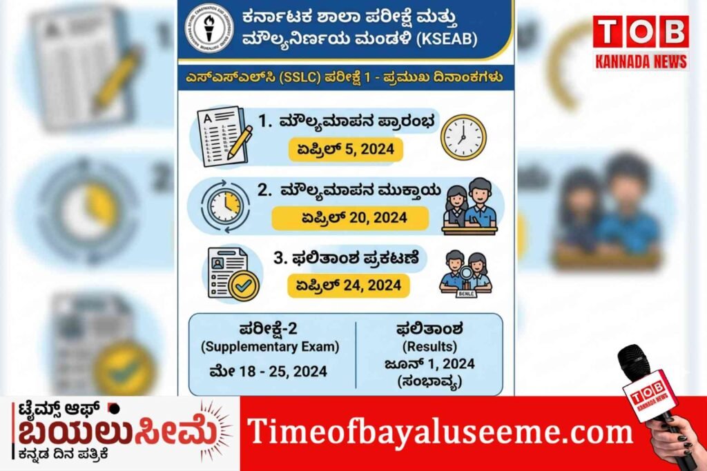 ಶಿಕ್ಷಣ ಇಲಾಖೆಯ ವೇಳಾಪಟ್ಟಿಯಂತೆ ಏಪ್ರಿಲ್ 24ರಂದು ಎಸ್ಎಸ್ಎಲ್ಸಿ ಪರೀಕ್ಷೆ-1ರ ಫಲಿತಾಂಶ ಪ್ರಕಟವಾಗಲಿದೆ. ವಿಷಯವಾರು ಸವಿಸ್ತಾರವಾದ ವೇಳಾಪಟ್ಟಿಯನ್ನು ಮಂಡಳಿಯು ಶೀಘ್ರದಲ್ಲೇ ಅಧಿಕೃತವಾಗಿ ಪ್ರಕಟಿಸಲಿದೆ.
